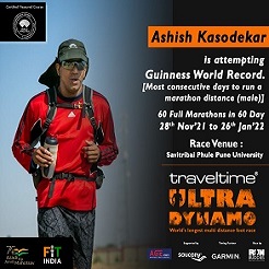 Mr.Ashish Kasodekar is set to make a world record of running 60 full marathons for 60 consecutive days. Traveltime is a staunch supporter of fitness and hence is honoured to be the title sponsor of this event. This marathon is nothing but a 'Fitness Carnival' and all the Punekars are invited to join us !!